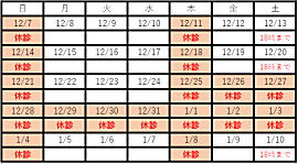 12月25日(木)〜1月4日(日)休診とさせて頂きます |